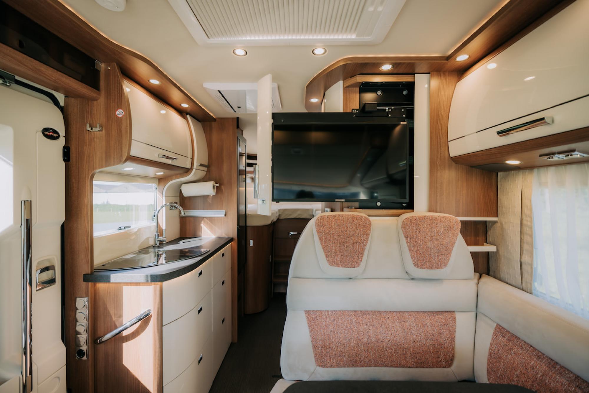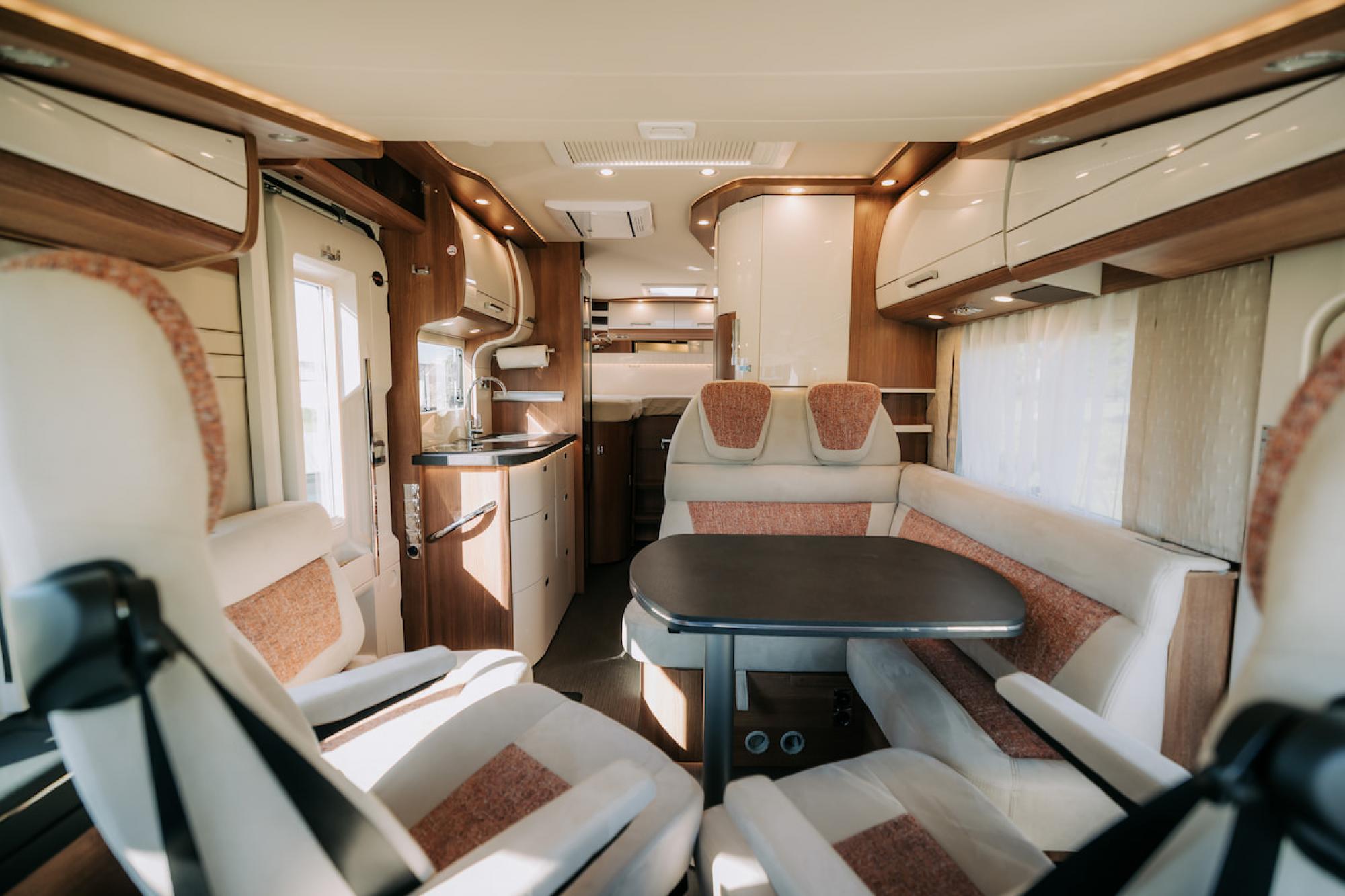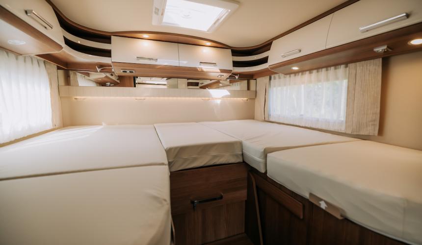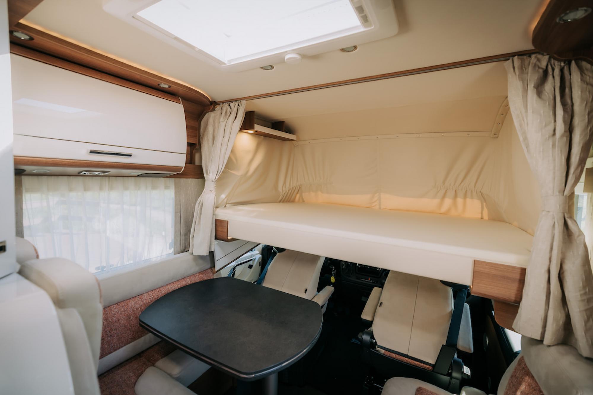 Deze camper is volledig uitgerust en perfect voor vier personen. Met comfortabele zitplaatsen en slaapplaatsen biedt hij alles wat je nodig hebt voor een zorgeloze vakantie, zowel onderweg als tijdens het ontspannen.