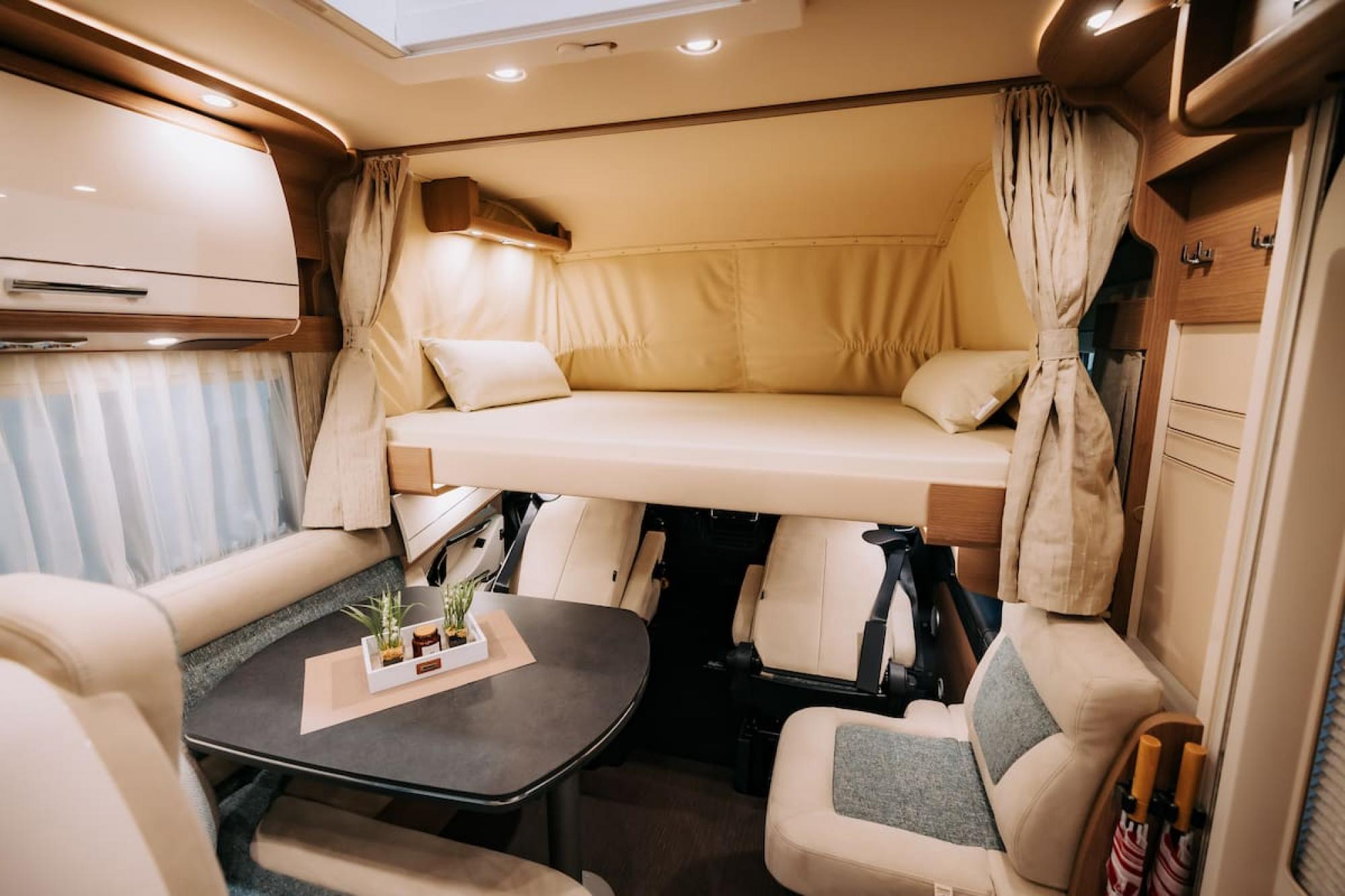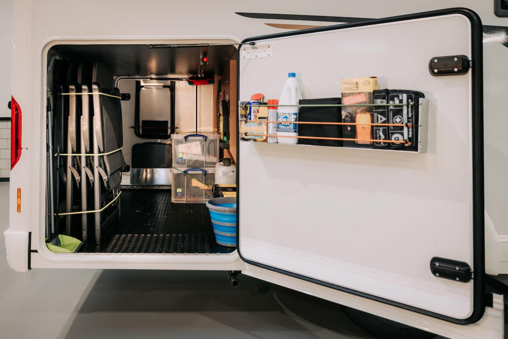 Aan de achterzijde is een fietsendrager voor twee (elektrische) fietsen en een ruime garage voor extra bagage of fietsen. Of je nu een weekendje weg gaat of een langere reis maakt, deze camper zorgt voor comfort en volop ruimte om te genieten.